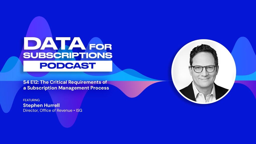 In this episode of the Data for Subscriptions podcast, Stephen Hurrell, Director of Revenue from ISG Research shares his extensive research and insights into effective subscription management processes in a world of AI Monetization. He emphasizes the importance of understanding the broader business model before diving into technology and data solutions and advises business owners to ensure that their subscription management strategies align with their current and future business needs. Tune in to learn about the challenges, trends, and essential steps to optimize your subscription business for success.